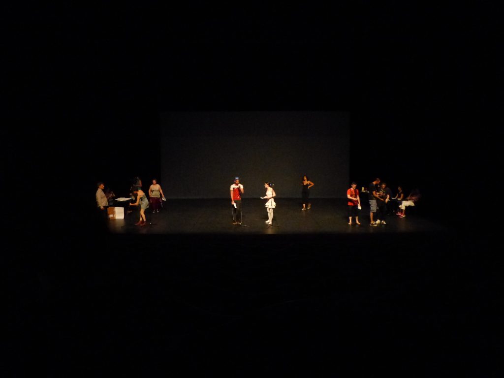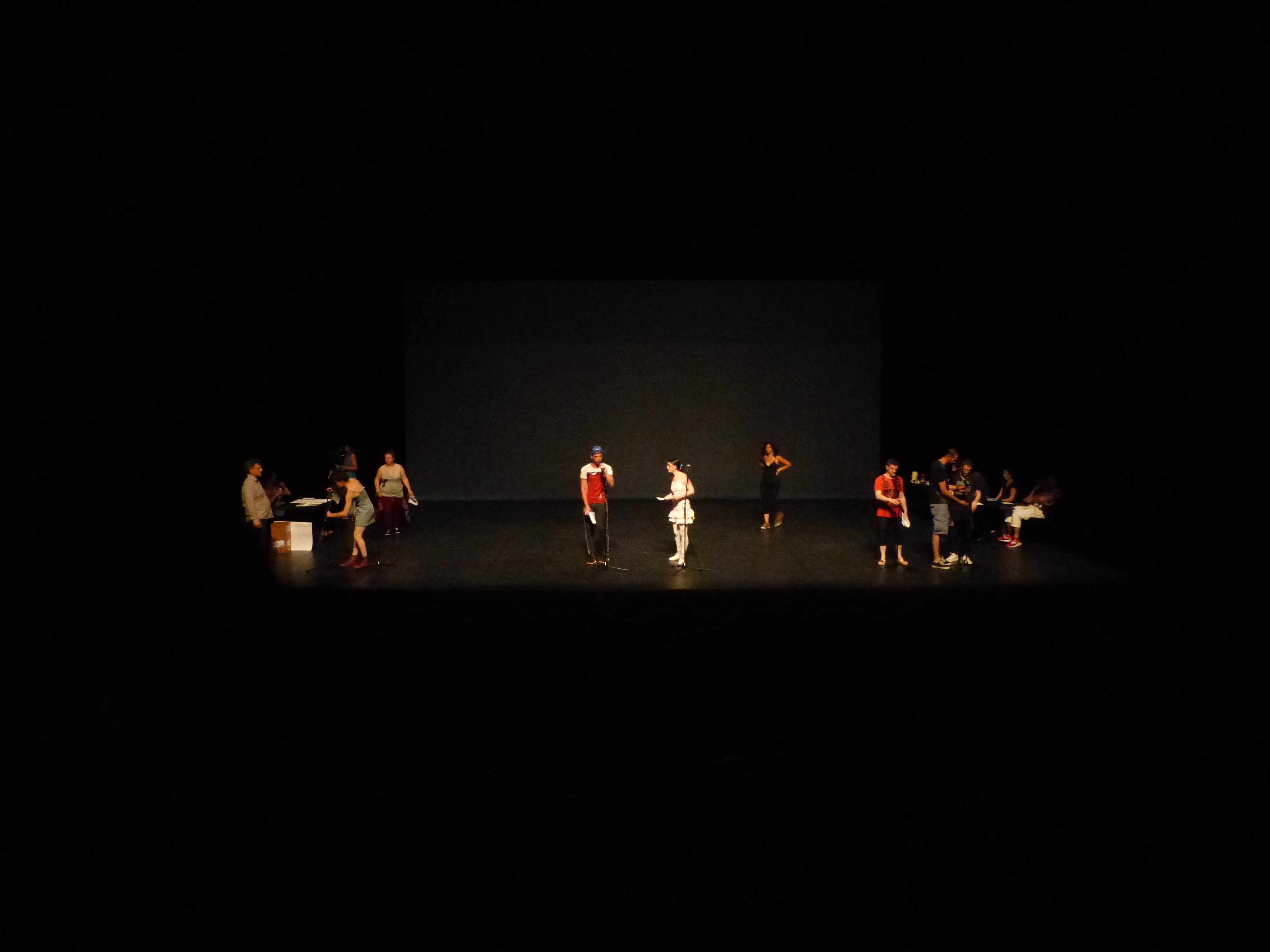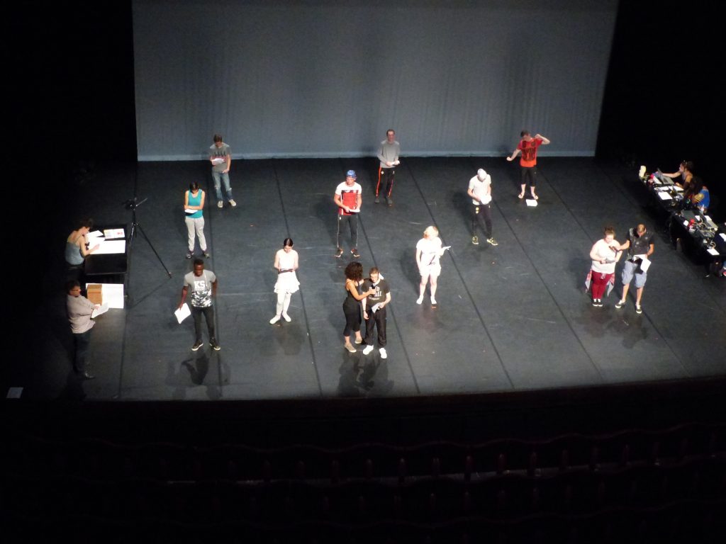 Il avance doucement : se fraye un chemin entre les fauteuils ou enjambe le cuir rouge. Il grimpe sur scène, y jette un œil et immortalise ce qui s’y passe en deux coups de flashs, il se glisse sans bruit derrière le rideau et capte sur le vif la vie de ceux qui se cachent encore. Il surprend pour ne pas perdre l’intensité du moment : il prend de prés, de loin, de haut, de travers, il joue avec les lumières et les teintes. Il revient avec son butin et sa journée de traque se raconte dans chacune des pièces qu’il expose. On y voit des scènes d’action sur le plateau, des scènes d’attente en coulisses, des scènes de groupe, des gros plans et des plans larges et ça donne une petite idée de ce que fut sa journée. La traque autour de la répétition entre scène, salle, coulisses et parvis ! Merci Kevin pour ton reportage !