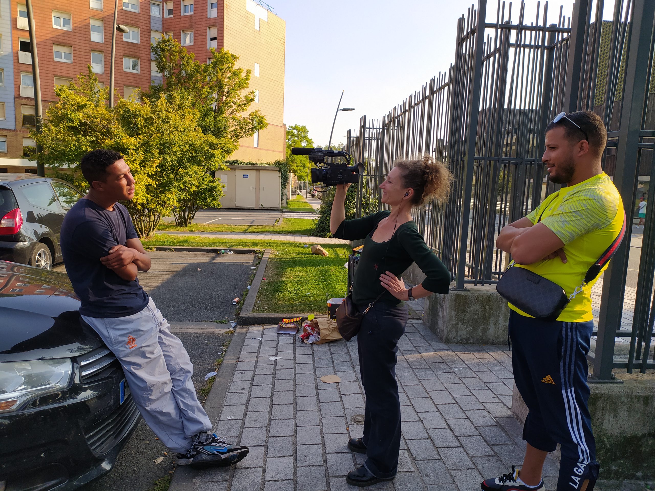 Une chaude journée d’été à Dunkerque. A la maison de quartier du Banc Vert, on multiplie les rendez-vous. De la vice-présidente et élue au conseil des parents d’élèves du collège à Géraldine Vanmeenen, assistante sociale ou encore Alexis Leclercq, directeur de l’école élémentaire. On a revu Abdel au city-park qui jouait au basket-ball. On fait le tour des questions avec les un.e.s et les autres, sur la famille. Qu’est-ce qui fait lien ? La relation des parents aux écoles. Comment se construisent les collaborations ? Qu’est-ce qui a changé dans les familles des temps modernes ?  Comment vit-on au Banc Vert ? Tout le monde nous parle de l’entraide et de la solidarité des habitants. La vice-présidente de la maison de quartier explique qu’une bénévole du quartier tient une permanence pour les dons. Les gens apportent ce dont ils et elles n’ont plus besoin qui est transmis à celui ou celle qui en fait la demande à la permanente des donations.