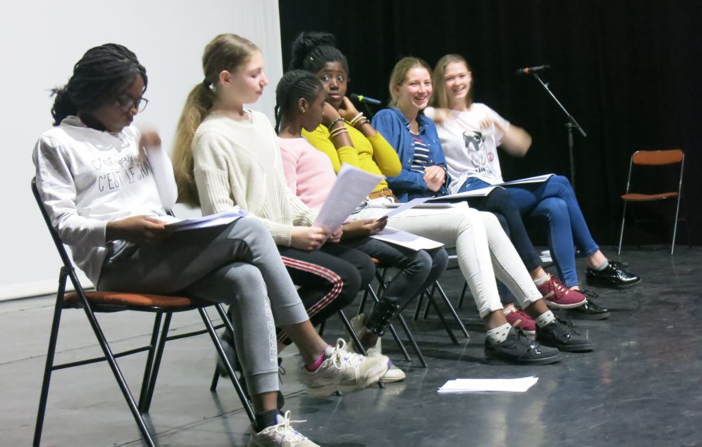 Dans le train, Maëlle raconte : « C’était trop bien, mais ce n’était pas facile. Au début, j’étais stressée, très stressée même, je me suis dit que je ne connaissais plus mon texte, que je n’allais jamais réussir. Dans les loges, mes copines m’aidaient, même si, elles aussi, elles étaient stressées. Camille nous faisait faire des respirations en bougeant les bras comme des vagues. Hilary me faisait rigoler pour me détendre. Aïssatou et Éloïse me faisaient des câlins. Au fur et à mesure, ça allait mieux. Quand je suis montée sur scène, il n’y avait plus du tout de stress. On s’est même bien amusé. Au ‘Tour de Piste 2’ j’ai eu un trou de mémoire, mais j’ai improvisé. Après le spectacle, on criait dans les loges, tellement on était contentes. »