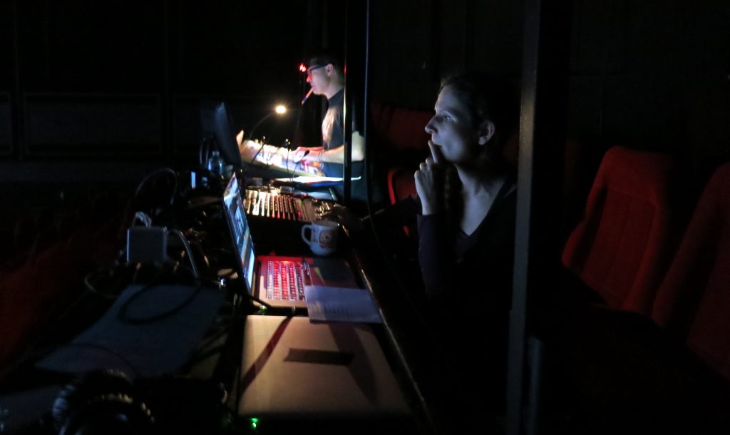 Ce matin, Bénédicte a remonté la table-vidéo des gradins à la régie.