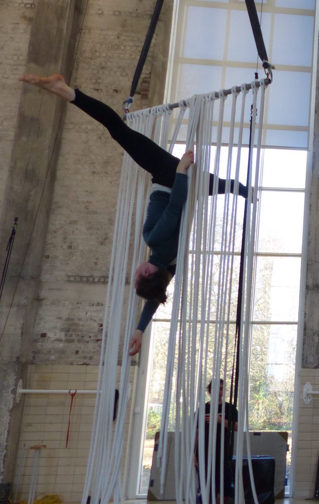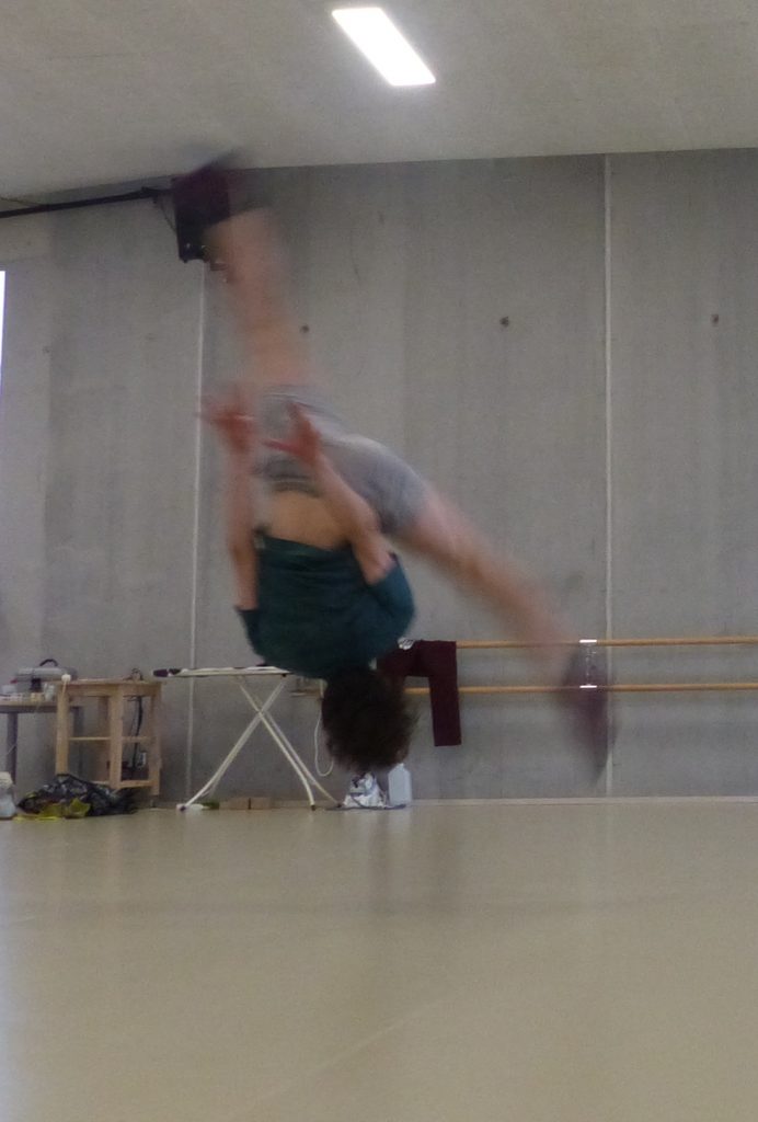 Le parcours dans la création depuis 2 semaines et jusqu’ici, est dur et parfois avec beaucoup de questions, de pourquoi, mais ça commence à devenir plus concret avec les impros physiques, théâtrales avec Guy, avec séances de danse et les séquences en petits groupes. J’ai hâte de voir la semaine prochaine, le travail avec les agrès, j’espère que pourrais répondre à des questions et le rendre plus clair !
