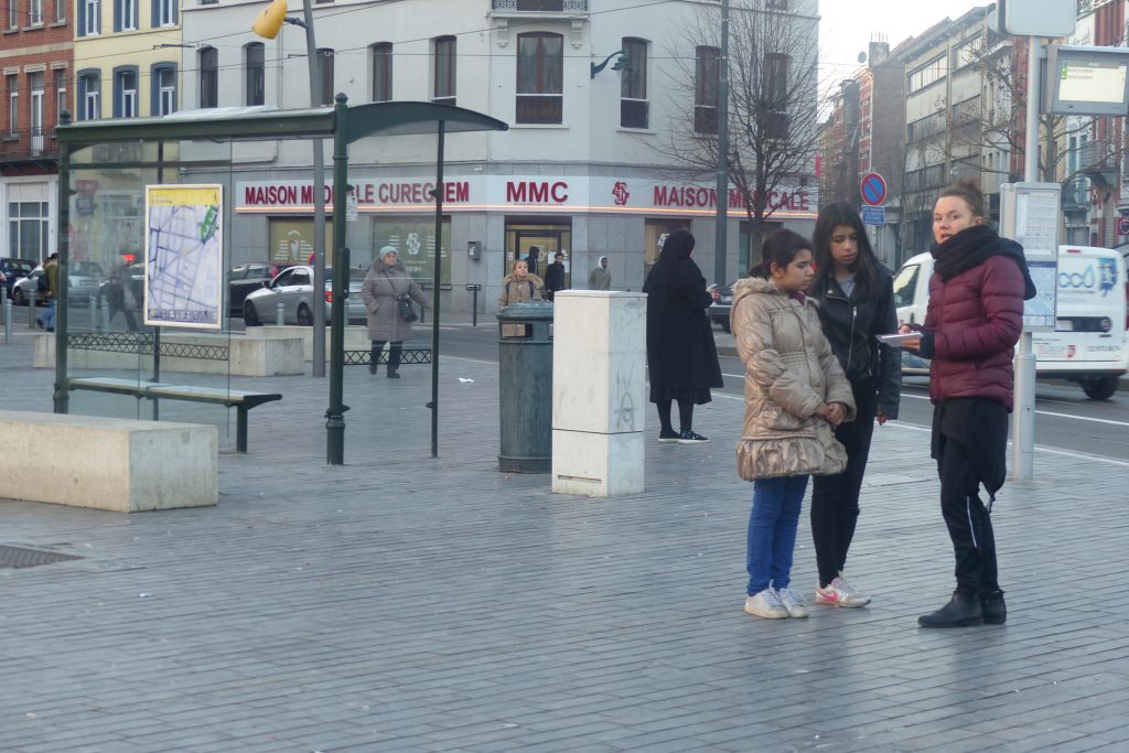 C’était au Bazar, à la maison des jeunes, avenue Jean Volders. Paul, Emilia et Carla raconteront ensuite aux autres étudiants de la promo de l’ESAC que, là-bas, ils ont croisés des enfants très intéressants, très intéressés, très curieux, très vivants, des enfants qui posaient beaucoup de questions.