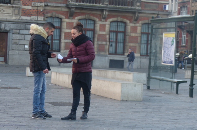 Et Leoni qui donne des flyers, qui parle de Cirqu’Conflex, de l’ESAC, des petites formes qu’on propose dans la rue, du spectacle, de la première qui ce sera mercredi 30 janvier.