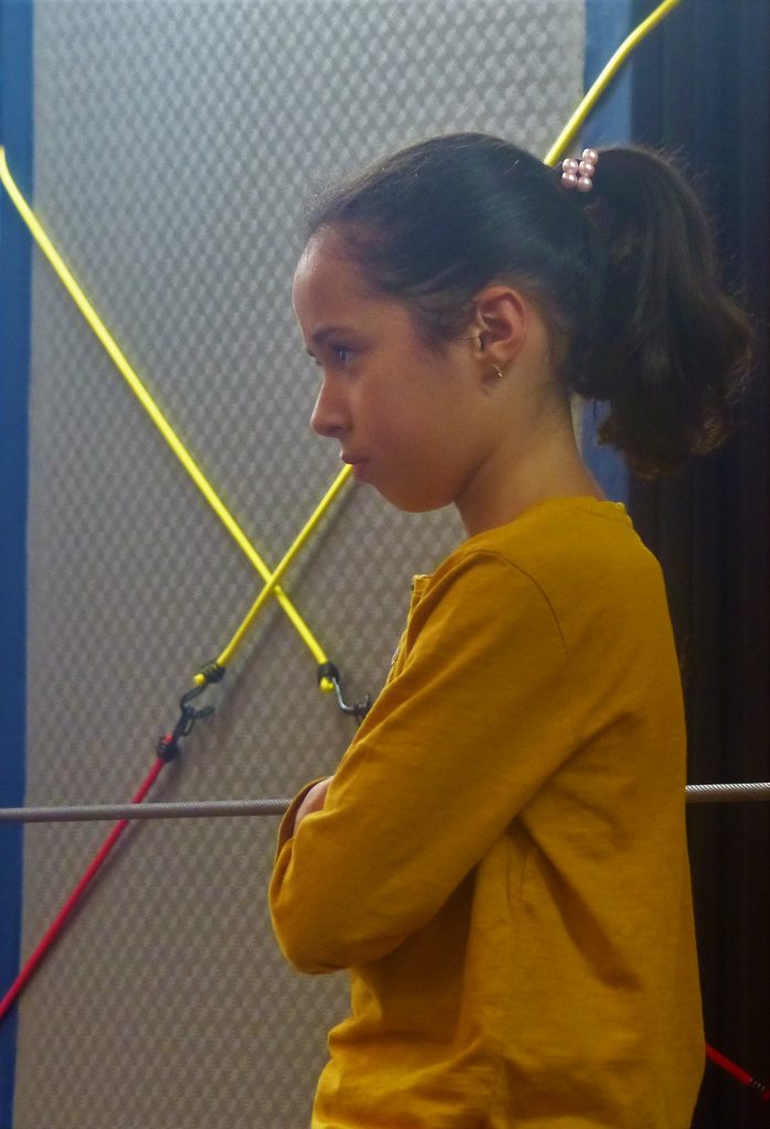 Nous avons retrouvé aujourd’hui, à Cirqu’Conflex, les enfants que nous avions interviewés hier à la Maison du Compas : ils viennent chaque semaine à l’atelier multi-cirque. On montrera aussi quelques photos : trapèze, mât chinois, tissus, cadre aérien… : « Hein, mais non, ça, ce n’est pas possible de le faire ! »