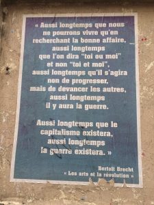 Gilbert et Marie préparent toute la logistique des différents évènements de la saison et en particulier, bien sûr, No Border. C’est compliqué car les gens viennent de loin. Quelques un.e.s sont d’ici (du nord) mais pour la plupart, ils et elles sont d’ailleurs. Il a fallu trouver des hébergements et des véhicules pour que tout le monde puisse être dans les temps au 11/19. Nous avons réparti les logements à Lille et à Loos en Gohelle. Nadège est logée à Loos en Gohelle dans un magnifique gîte tandis que le reste de la troupe dormira dans une belle maison bourgeoise de trois étages, à Lille. Ceux et celles qui sont des Hauts de France restent chez eux (ce qui tombe sous les sens). Depuis que la troupe est troupe, on a logé des gens dans tous les recoins de la région. Aix Noulette, dans les premières années avait la faveur de nos choix : un grand gîte composé de huit à dix chambres nous permettaient d’y mettre tous nos artistes et techniciens éloignés. Ensuite nous sommes tournés vers Vermelles, un grand gîte, là aussi, mais qui penchait. Puis il y a eu Lorgies, Gonnehem, la maison de retraite de Méricourt, Rebreuve Ranchicourt, Monchecourt, Estrée-Cauchy, Lens, Béthune et beaucoup, beaucoup, beaucoup d’autres endroits. En général, les gens qui viennent d’ailleurs préfèrent être sur Lille et co-voiturer le matin jusqu’à Loos en Gohelle. A Lille, le soir on peut plus aisément trouver à se distraire qu’à Lens.