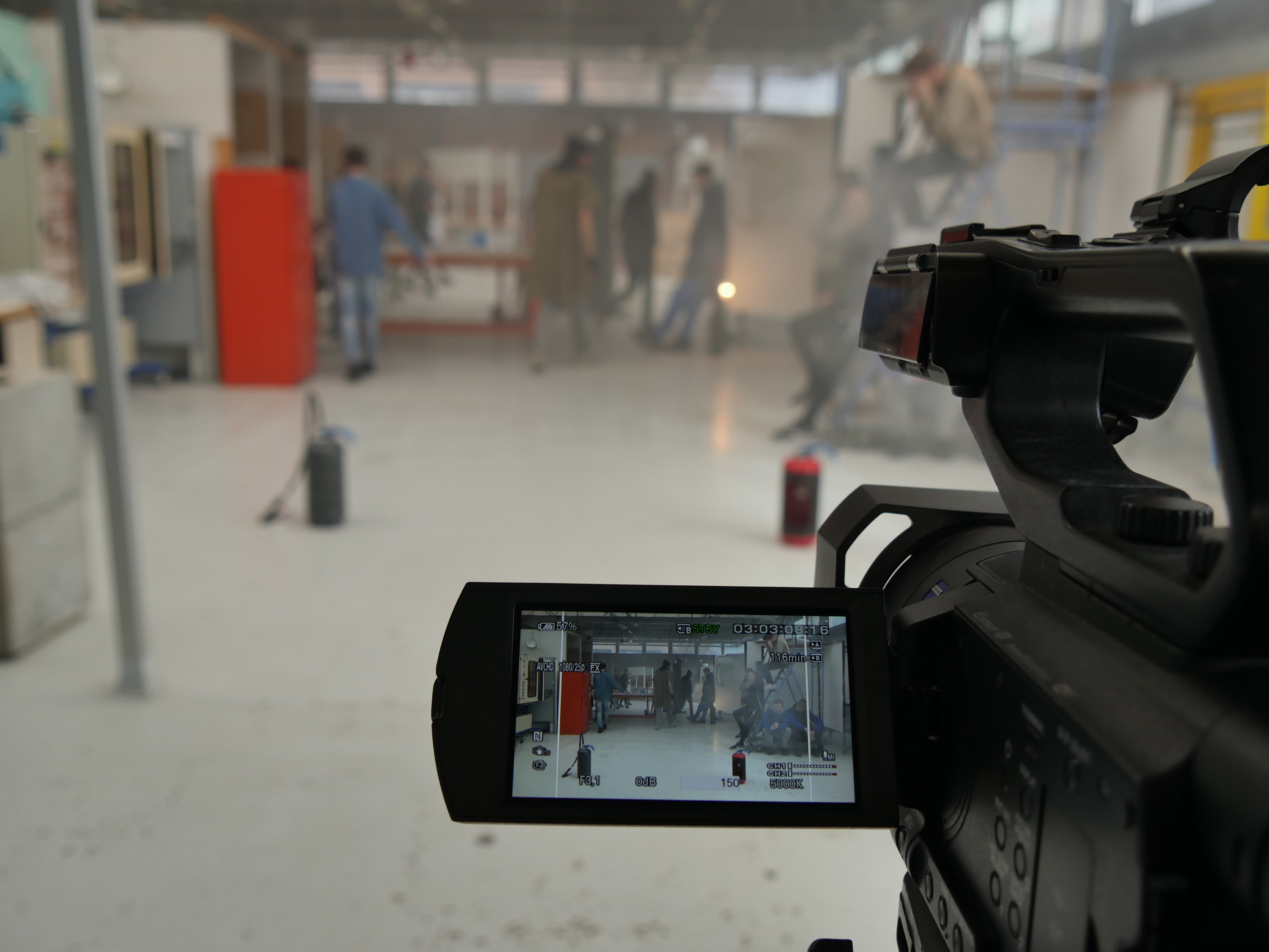 Les vêtements de l’éco-shop des Terminales Commerce et les lampes créées à partir d’anciens extincteurs des Terminales Électricité se retrouvent dans le défilé créé par Mourad dans les ateliers de La Peupleraie, sous la caméra d’Alexandre, le tout dans un nuage de fumée, grâce à la machine à fumée prêtée par la MAC de Sallaumines. Merci ! 🙂 Musique, l’ambiance monte.