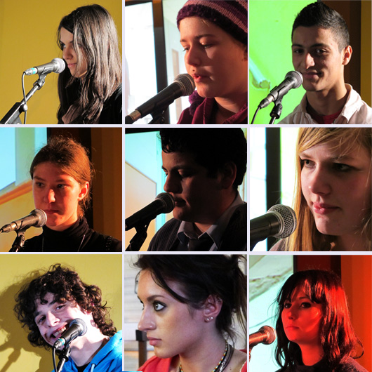 Les mots que Bérénice a glané dans le lycée, lundi, se sont transformé en phrase, en phrase dansée, et comme une rumeur, Hervé à répété la phrase et transmise aux lecteurs et voilà que la phrase se retrouve sur la petite scène de la salle de la rotonde, maintes fois interprétée. Comme une belle rumeur qui parle du lycée.