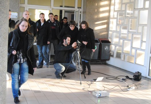 La sonnerie retentit. Deuxième après midi à Dunkerque, au lycée Jean Bart. On a tourné dans tout l’établissement déjà maintes fois. Pour faire des images. Rencontrer les élèves. Danser. Leur demander d’imaginer Antigone et nous donner la réplique sur Godot et tout… Deuxième sonnerie, mardi après midi, 22novembre 2011, lycée Jean Bart à Dunkerque, les cours reprennent.