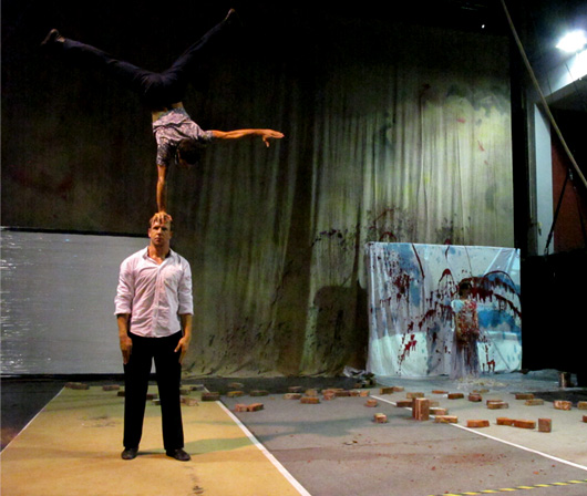 Donc, bienvenue à cette représentation d’une trentaine de minutes, quarante minutes, cinquante minutes qui mêle vidéo, théâtre, danse, cirque et tout…