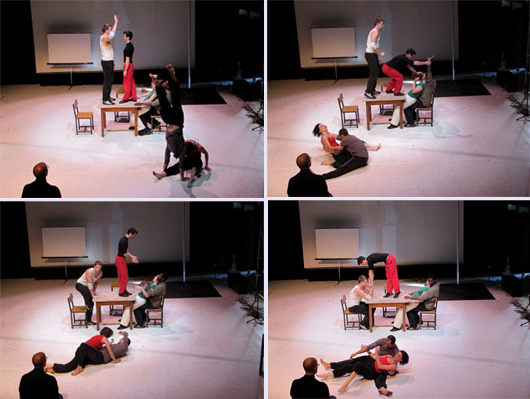 La table nouvelle est arrivée. Après deux trajets à Emmaüs, après beaucoup de bricolages, équerrage doublage du plateau, couper les croisillons. La table nouvelle est là, phase test. Reste encore le ponçage, aspect, finitions. Phase test : danser sauter dessus taper porter. Ça ira. Romain et Didier ont bien bossé.
