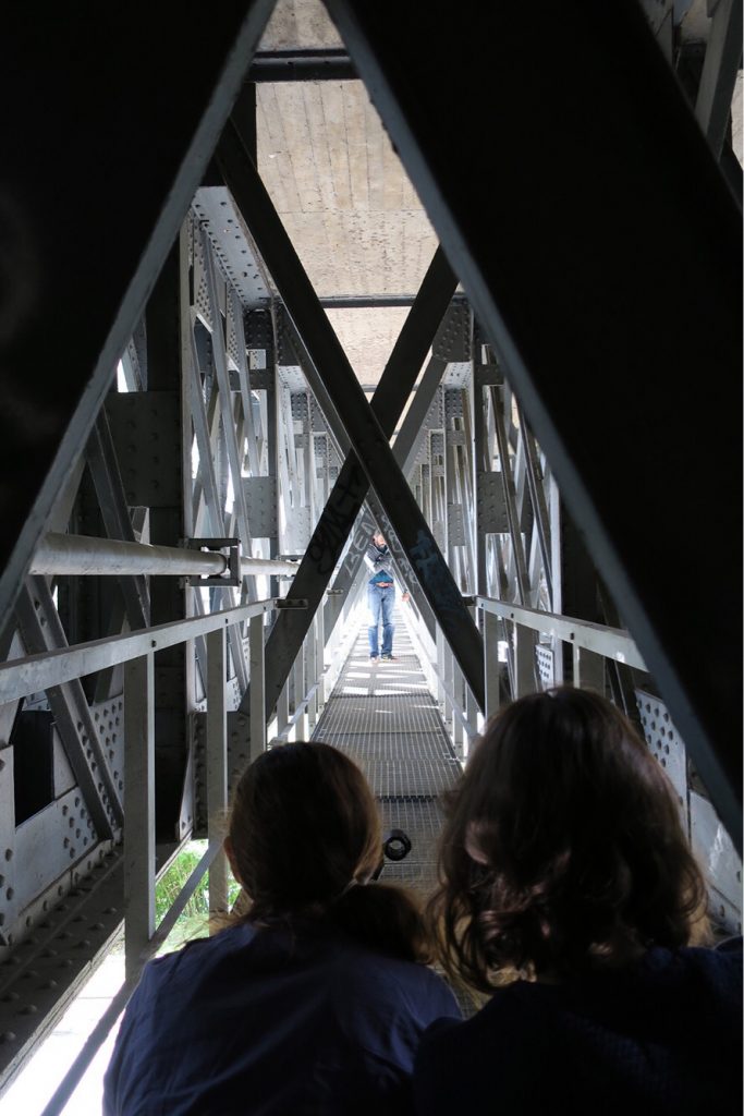 Ensuite, nous partons car nous avons entendu dire que des artistes logent et travaillent dans des containers: « Après le pont, puis le rond-point, puis 400m puis à droite puis à gauche, etc ». On y va.