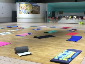 Ce sont des maîtres-verriers qui sont installés dans les containers. Ils sont trois à y travailler aujourd’hui. Ils restaurent des vitraux de Rodez et d’une cathédrale. On est fascinés. Ils sont en plus extrêmement gentils… On fume une cigarette avec eux pendant qu’ils nous expliquent leur parcours, ce qu’ils font, etc. Du coup, on décide de faire une interview, c’est trop intéressant (même si on a peur de se faire disputer au Q.G. car on ramène trop de matière mais on sait aussi que tout le monde au Q.G. nous pardonnera car cela valait le coup!). Je n’en dis donc pas plus pour vous inciter à venir voir le film-spectacle, vendredi. Ils seront dedans!