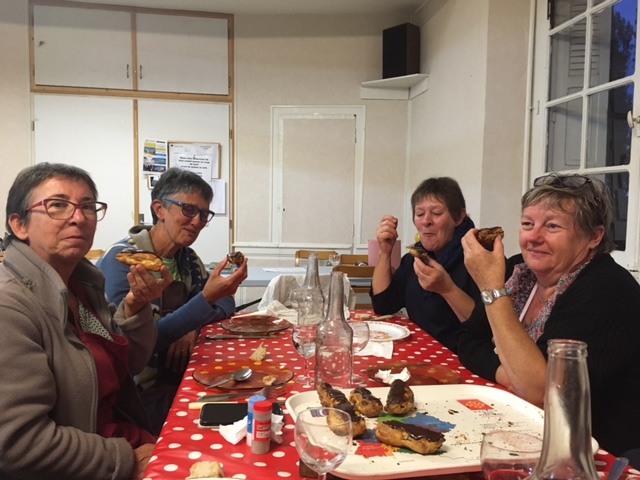Nous sommes surpris mais volontaires…et nous nous installons gaiement autour de la table. On ne croit pas encore vraiment à ce que nous allons vivre. Mais quand les soupières fumantes de tripoux sont arrivées devant nous avec notre verre de vin rouge à 9H35…On a sué!
