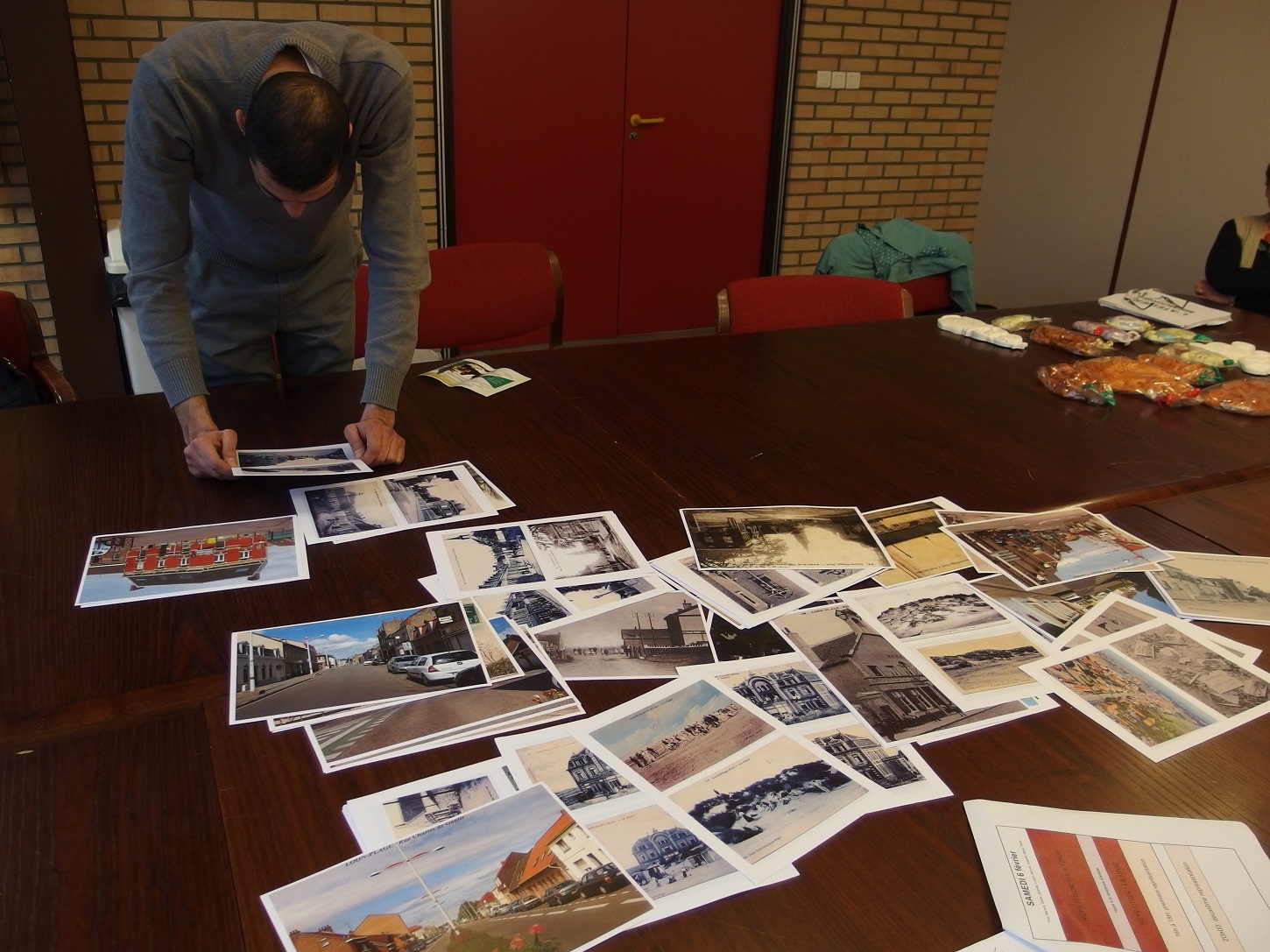 On a rencontré beaucoup de monde au CCAS de Loon Plage et nous y avons été très bien accueillis par Sylvie et tous les adhérents, ainsi que le directeur du lieu. Nous avons discuté avec Elisa Dalmasso qui vient là en tant qu’écrivaine. Elle a enseigné à Loon Plage pendant 14ans et elle a publié plusieurs livres dont des ouvrages d’histoire sur la ville. Elle anime un atelier d’écriture au CCAS auprès des personnes âgées pour garder la mémoire qui se perd. André Delattre a 88 ans et dit on est à la retraite et on se laisse vivre quoi. Il a travaillé dans les années 10 à Vendin le Viel dans le Bassin minier du Pas de Calais. Il était boucher. Ensuite il est revenu à Loon Plage et il est devenu ambulancier et cafetier. Puis il a monté en m^me temps que tout le reste une entreprise de taxi. Il a ouvert quelques années plus tard un café-routier. Aujourd’hui, dit il, je joue aux cartes et je fais de la peinture. Jean Bancart habite Loon Plage depuis 86 ans. Là où se trouve aujourd’hui le CCAS, il y avait à l’époque son garage de réparation automobile. Il a été longtemps pompier volontaire. A ce moment là, il y avait beaucoup de fermes et de feux dans les granges. Jean Bancart nous a ensuite raconté l’histoire de Loon-Plage depuis la nuit des temps. Dans les années 50, il y avait un médecin qui accouchaient les femmes, arrachait les dents… Il y avait plus de 22 cafés dans le village et chacun accueillait un public spécifique, un cinéma et un bal avec les frères Bayeux. La plage était la plus belle du monde, avec un magnifique hôtel. Les gens venaient de Lille, Roubaix, Tourcoing.