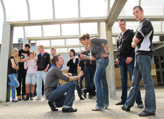 Dès le matin, Antigone dans une classe de boulangerie pâtisserie. On n’ose pas trop interrompre, parce que la confection des pains et petits pains a l’air plus importante, on fait un Antigone et portrait photo autour des plans de travail enfarinés. Pâte feuilletée. Faut dire que si le pain n’est pas prêt pour midi, eh bien il n’y aura pas de pain pour la cantine, c’est tout simple. Les apprentis sont responsables et matures, et ont l’air passionné, concentrés, efficaces.