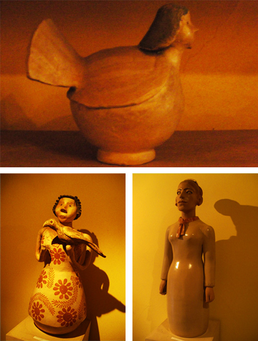 Fomos numa bolha de plantas. Encontramos a Priscila, o Alberto e suas obras de arte. E dividimos um pouco a paixão deles pelo que é belo, ao redor do mundo, e pelas artes e tradições populares daqui. As jarras, de barro, do norte de Minas Gerais, que representam personagens, e as estatuetas da vida cotidiana, um ladrão de galinhas, um casamento, uma pequena casa, um batizado, e quimeras, a mulher-sapo, o homem-cavalo, e as figuras religiosas, cenas do novo testamento e de crenças populares. Estamos na casa do barro, onde antigamente eram feitos os tijolos e as telhas, portanto, evidentemente, toda de tijolo e telha, ocre-vermelha, tão bonita, cercada de árvores como não se pode imaginar. E debaixo das árvores, os dançarinos fizeram o quinteto. E debaixo da árvore de canela, fizeram o adage.