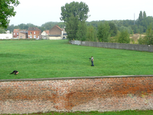 L’équipe est au complet. Nous voilà désormais entourés des « acrobates danseurs » (Camille, Dorothée, Fatiha, Mourad et Anthony) qui ont posé bagage à Douai-Dorignies pour le film-spectacle qui jouera vendredi (20h) et samedi (16h et 20h) à l’Hippodrome de Douai. Maggie et Marie Forquet nous accompagne également pour la matinée. On investit le premier étage du centre social, juste le temps de tous nous retrouver et de faire un point sur les actions prévues dans la semaine. On va essayer d’être au maximum dehors, dans la rue, dans les commerces, au hasard des portes. Rencontrer le plus de gens possible, leur parler de la veillée, danser pour eux, leur offrir une chanson…La semaine s’ouvre sur une matinée de rencontres en porte à porte, on se répartit en deux groupes et on part frapper à chaque porte de la rue de l’Eglise pour proposer aux gens de réciter une citation de leur choix devant la caméra. Pour certains, l’idée d’être filmé rend l’exercice plus difficile, mais peu importe, on prend le temps, on fait plusieurs prises. Certaines personnes sont heureuses d’apprendre qu’une navette est mise à disposition des habitants pour se rendre à l’Hippodrome, une dame nous annonce qu’elle viendra accompagnée d’un voisin et qu’ils iront ensemble prendre la navette devant le centre social. Elle regarde ensuite la caméra et dit « On ne parle jamais aussi bien qu’aux visages inaccessibles ». Il est midi, et le soleil s’installe à Dorignies pour la semaine, nous a t-on dit.