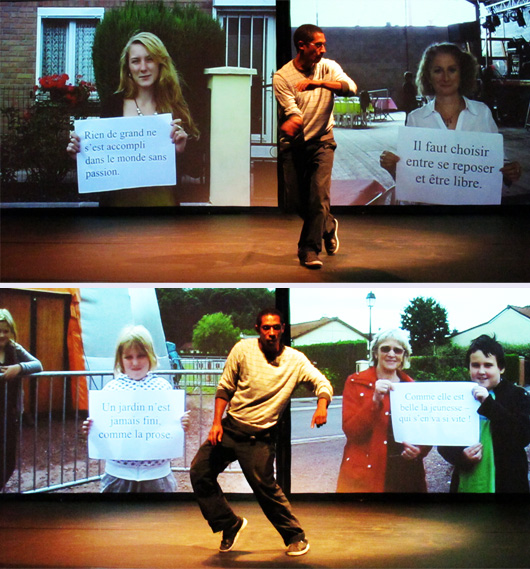 Premier filage. Ça se passe bien. c’est toujours un peu entrecoupé quand c’est le premier. Revoir placements. Musiques, mixages, sons. Refaire la bande. Réglage lumière. Ajout d’un texte pour respect timing synchro avec la vidéo.