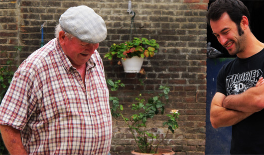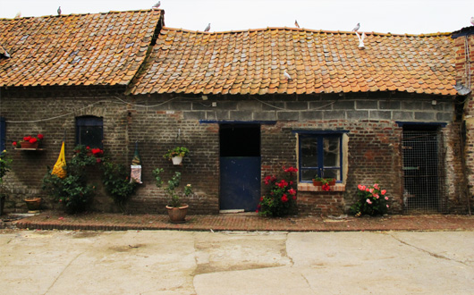 Porte à porte dans les rues de Fresnicourt. Enfin, dans les rues, c’est beaucoup dire puisqu’on n’a fait que trois maisons. On a été merveilleusement accueillis partout. On a longuement parlé. On a visité trois potagers, tous différents. On a parlé d’agriculture, beaucoup. Fresnicourt est très différent du bassin minier. Petit village à flanc de colline, rues qui serpentent en épingles à cheveux, grandes fermes. Un paysage très agricole. Une vallée et un horizon. Au loin, les éoliennes toutes petites. On imagine que, de près, elles doivent être immenses. Jérémie a longuement parlé avec Pierre Lepillet, notamment des questions de fermage, de terrains agricoles, de leurs valeurs, des châtelains d’Olhain, et tout. Pendant ce temps, Flora a parlé avec Reine, de la ferme, la famille, le jardin, la vie du village. Reine dit que les gens du village qui achètent encore dans les fermes les bons produits du jardin ou la viande sont de plus en plus rares. A part quelques exceptions, ils préfèrent acheter dans les supermarchés. Elle parle des frites qu’elle fait avec les pomme de terre Charlotte du jardin. On sent l’odeur. Ça n’a rien à voir. Chez Reine et Pierre, il y a toujours entre six et dix personnes pour manger. Même si c’est beaucoup de travail, Reine aime bien la popotte et les enfants, dit-elle. Et lui, Pierre, il aime le jardin, et puis aussi la chasse. Il nous a montré ses poules faisanes, ses colverts, ses canes de barbarie. On a passé une matinée tellement agréable, se dit-on… On a bien savouré le droit à l’errance et à la rencontre que nous offrent les veillées. On a une chance inouïe.