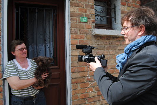Ce matin, en faisant du porte à porte, on a rencontré Claude. Claude était sur le bord de la route et essayait d’arranger les parterres de fleurs. « Oui, parce qu’avec leurs machines à la mairie, il peuvent pas aller partout. Ils me font marrer avec la technologie, même une fusée pour aller sur la lune, il faut bien un bonhomme dedans! » Claude savait déjà pourquoi on était là. Plusieurs personnes passent en voiture et le saluent, il ne les reconnait pas. »Je pense que tout le monde me connait mais moi je vois plus d’un oeil, j’ai la berlue! Vous savez ce que ça veut dire? » Claude nous montre un petit ruisseau où vivent des canards qu’il vient voir tous les jours. On discute longtemps, de la maigre retraite agricole de sa femme, 1500 euros par an, de leur vie difficile, de la différence entre le Nord et le Pas-de-Calais mais aussi de Sacha Distel et d’Yma Sumac. Quand on reprend notre route il nous lance « Ici, on est des culs terreux! vous voyez ce que ça veut dire? À Samedi alors, je suis content de vous avoir rencontrés! »