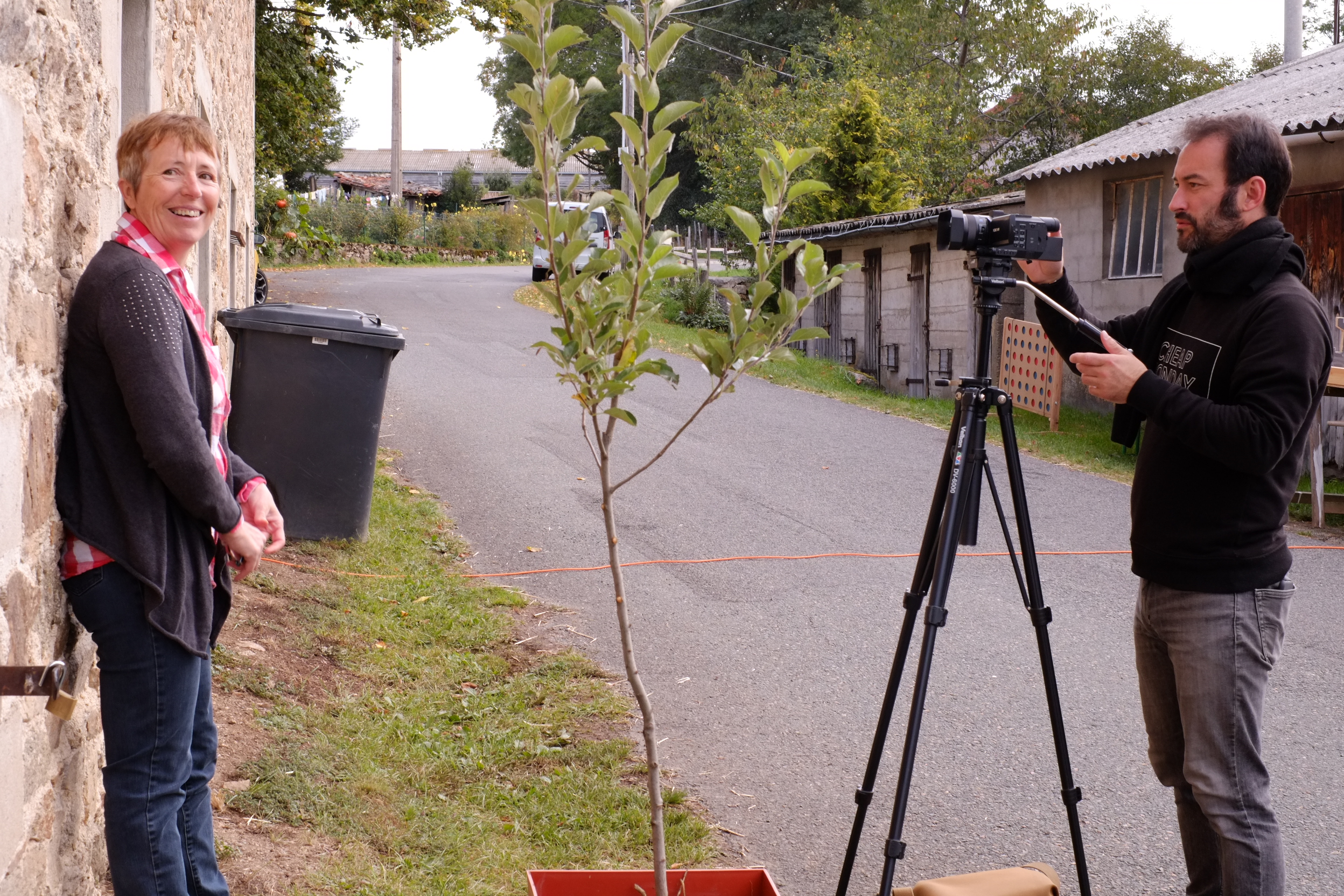 Et voilà qu’Amélie, de Supertrat, nous envoie des photos. Des veilleurs, avec des caméras, devant des chalmazellois – pour une histoire, une citation, une conversation filmée, un ‘pas-de-porte’. Et hop, on monte tout de suite de la plaine (ou même de plus loin, du nord de la France) à la montagne de Chalmazel-Jeansagnière.
