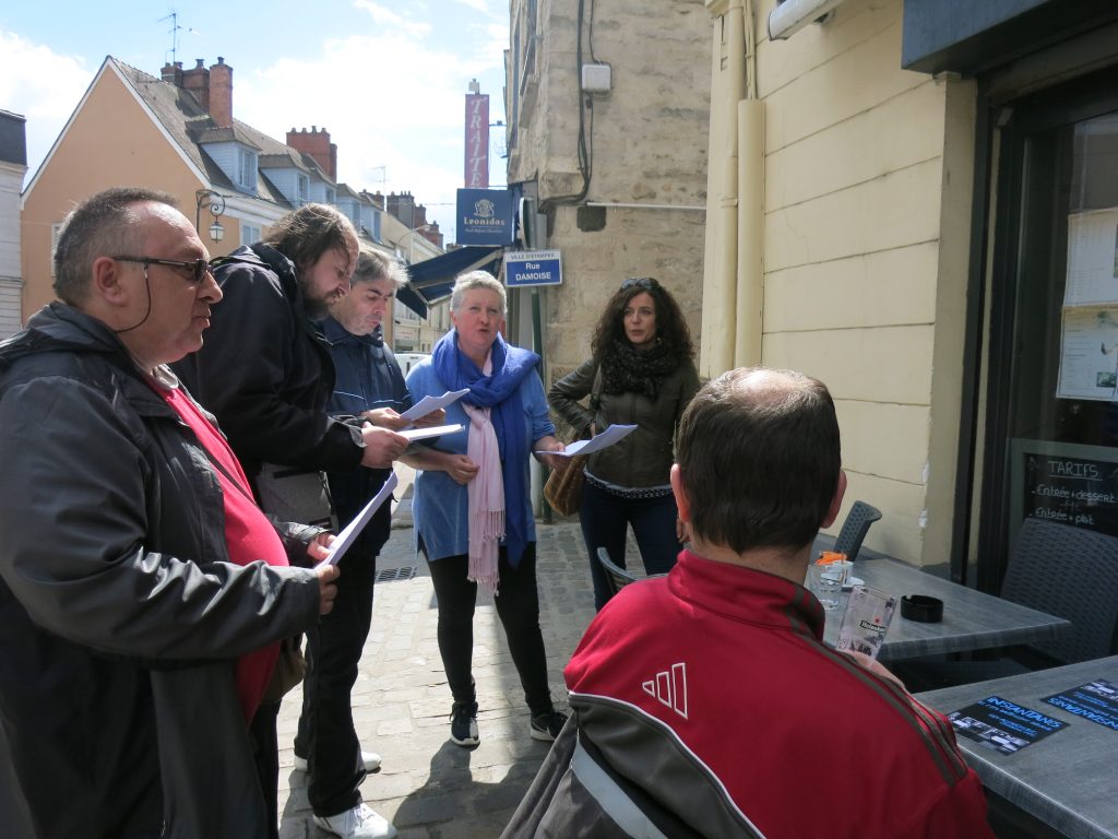 Sonner aux portes, parler du film-spectacle, parler d’Etampes et de BD, poser trois questions, filmer les réponses.