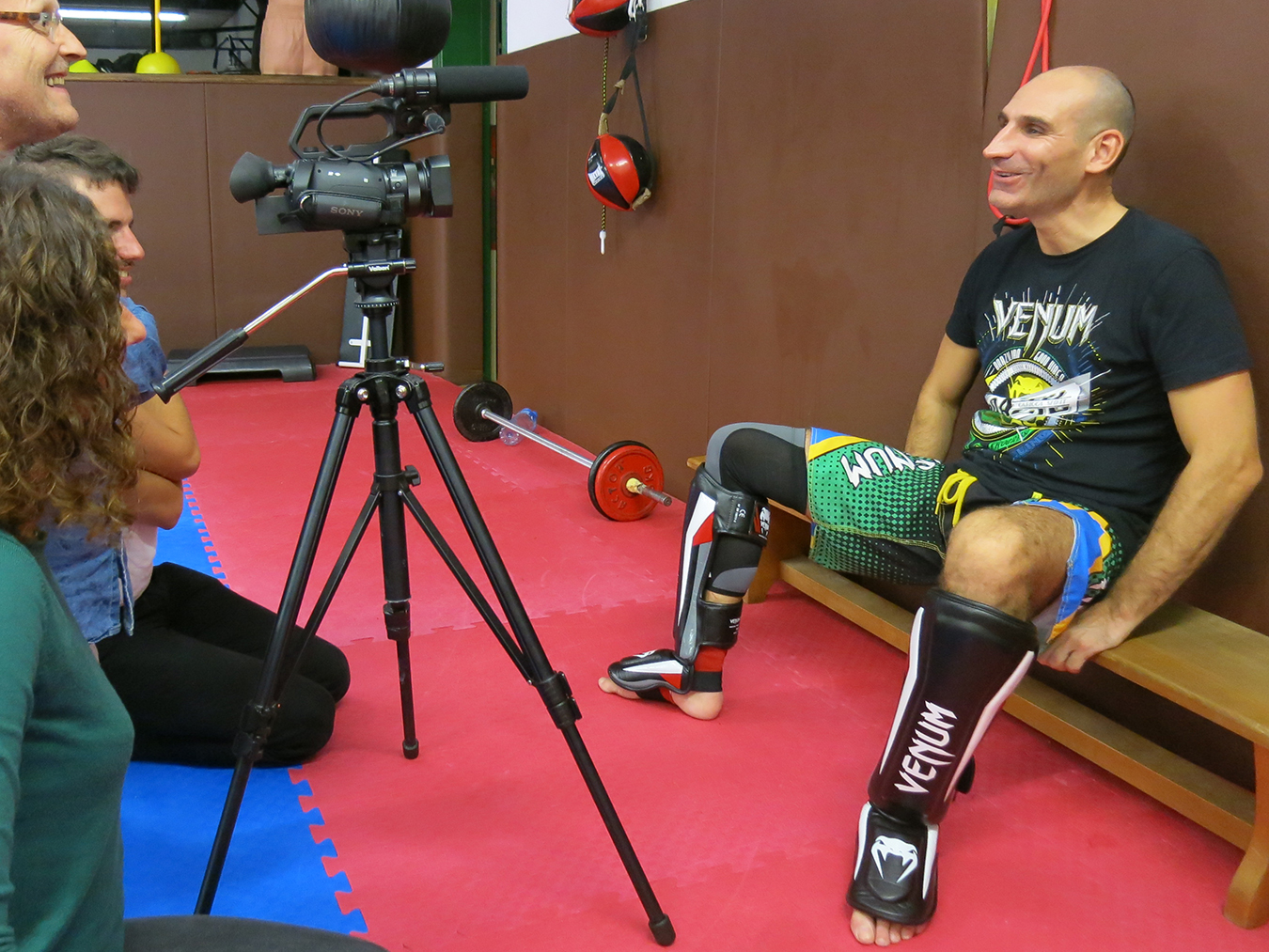 On va voir l’entrainement de boxe, dans le quartier du Puy Saint-Martin, aux Burgondes. On arrive entre deux séances d’entrainement. (Les filles sont en train de quitter la salle. Les garçons arrivent.) Et on rencontre l’entraîneur, Pascal Pastor, le président du club de Boxe de Saint Julien. Le Phénix Boxing a un fonctionnement très simple, personne n’est payé, tout l’argent va dans le matériel et pour le gala.