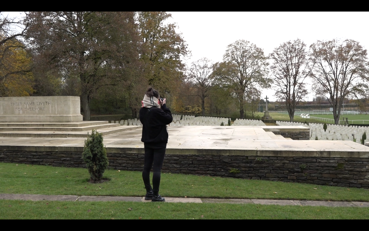 • La photo d’un soldat anglais : C’est la photo de mon grand-père, qui était soldat, et qui est venu dans ce village à Croisilles, pendant la guerre, la guerre 1914-1918. Nous sommes anglais, nous avons récupéré cette photo dans la maison de mon père. Nous avons retrouvé le journal de mon grand-père : il était à Wancourt et à Bapaume. Et nous pensons qu’il a passé devant cette maison quand il a marché entre Cherlsy et Bapaume. Et ça c’est la raison pour laquelle nous sommes contents d’être ici. Nous sommes anglais, nous sommes venus vivre ici avant de savoir que mon grand-père était exactement passé là. Mais maintenant on sait que cette photo est à la bonne place ici, dans ce village. Cette photo devait revenir ici.