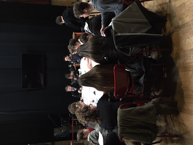 Retour à Loos-en-Gohelle. Tout le monde est au rendez-vous. Dès 10h, à l’arrivée des jeunes du CAJ d’Annequin, on se met à la table, pour travailler sur les textes et répartir les interventions de chacun dans les séquences du futur film-spectacle. À 10h30, on s’aperçoit qu’on n’a pas pris le temps de boire un café ou un jus de fruit pour fêter la reprise et le premier jour de cette deuxième semaine (après celle du 11 au 16 février), alors on fait une petite pause, mais on se remet vite au travail. Tout le monde est impatient de retrouver les textes. On lit, on parle beaucoup, on explique aux « quinze d’Annequin » comment va se passer cette semaine, ça va aller vite jusqu’à vendredi. Tout le monde est sérieux. Vers 11h, on leur précise : « Si vous avez des questions, n’hésitez pas ! » Et là, il y a juste une petite voix pour dire : « On n’a pas de question, c’est parce qu’on comprend vite. » Et le travail reprend. À table, jusqu’à l’heure du déjeuner.