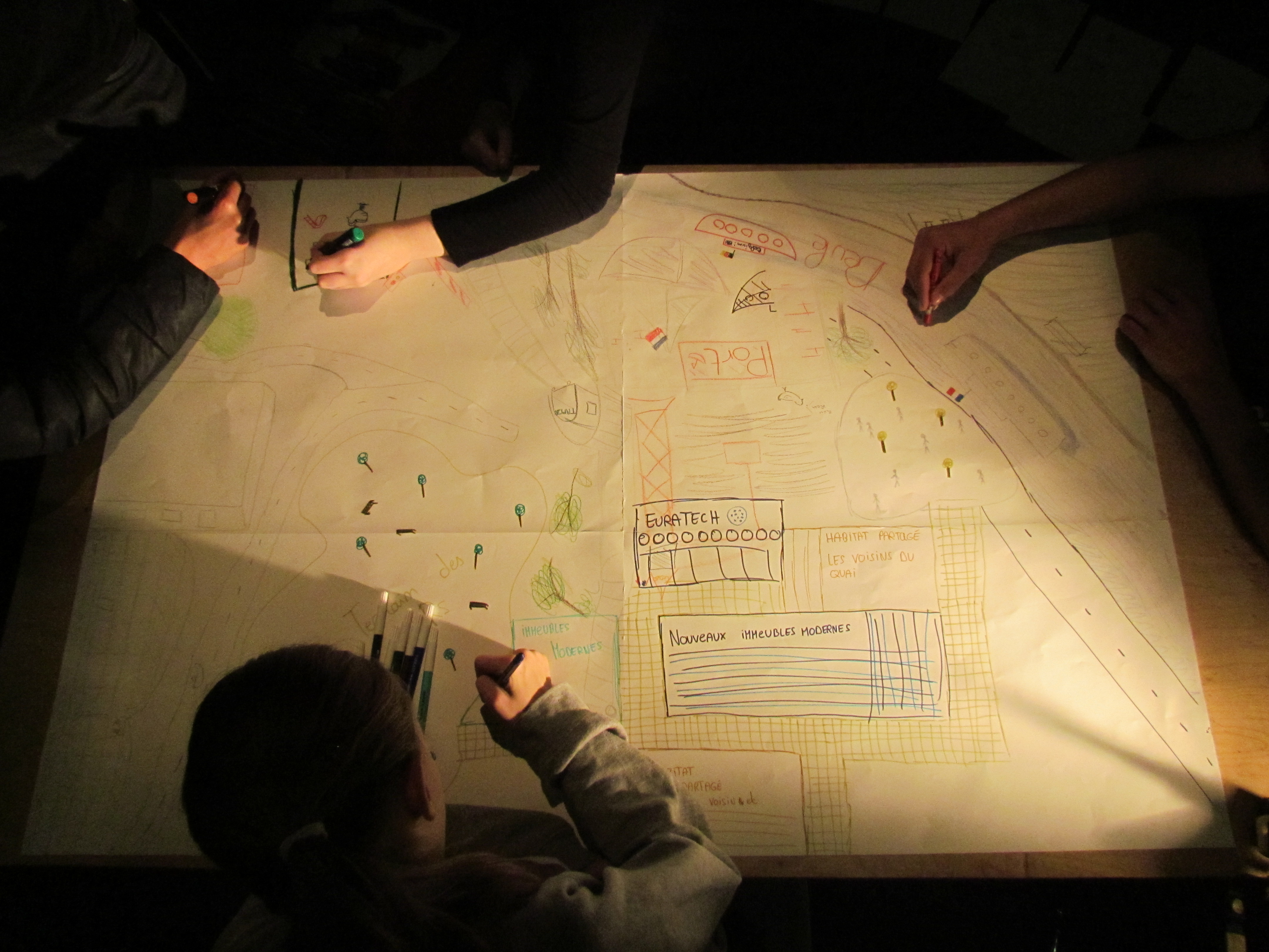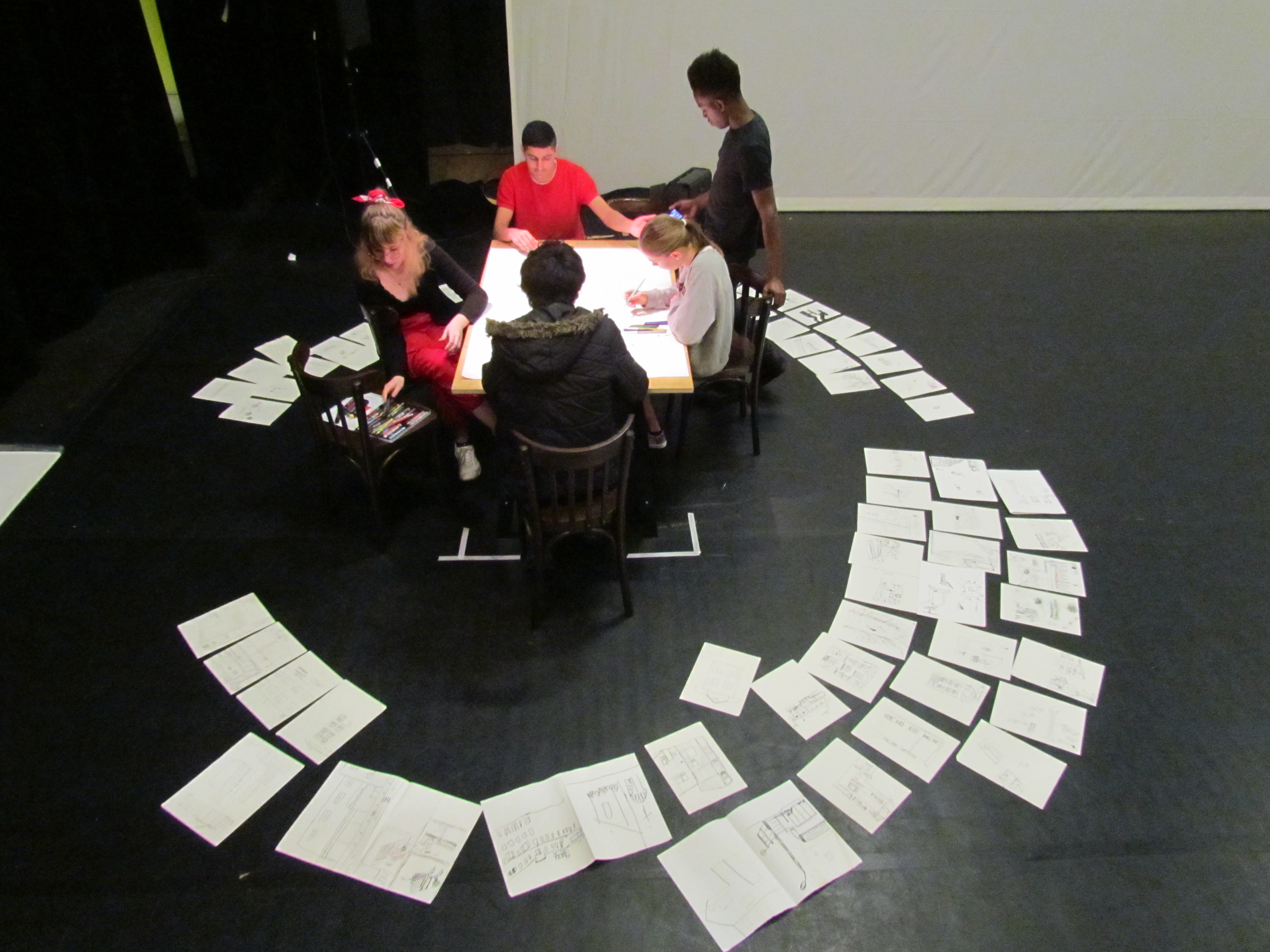 Les trois groupes sont là pour fabriquer un spectacle qui parle du « vivre ensemble ». Mais surtout ils sont tous à Lille, tous là, pour trois jours entiers. Le groupe de Lille accueille, il joue à la maison. Le groupe de Compiègne et le groupe de Loos-en-Gohelle (ou plus exactement d’Annequin) sont en déplacement, ils arrivent de la gare et dormiront à l’auberge de jeunesse ce soir.