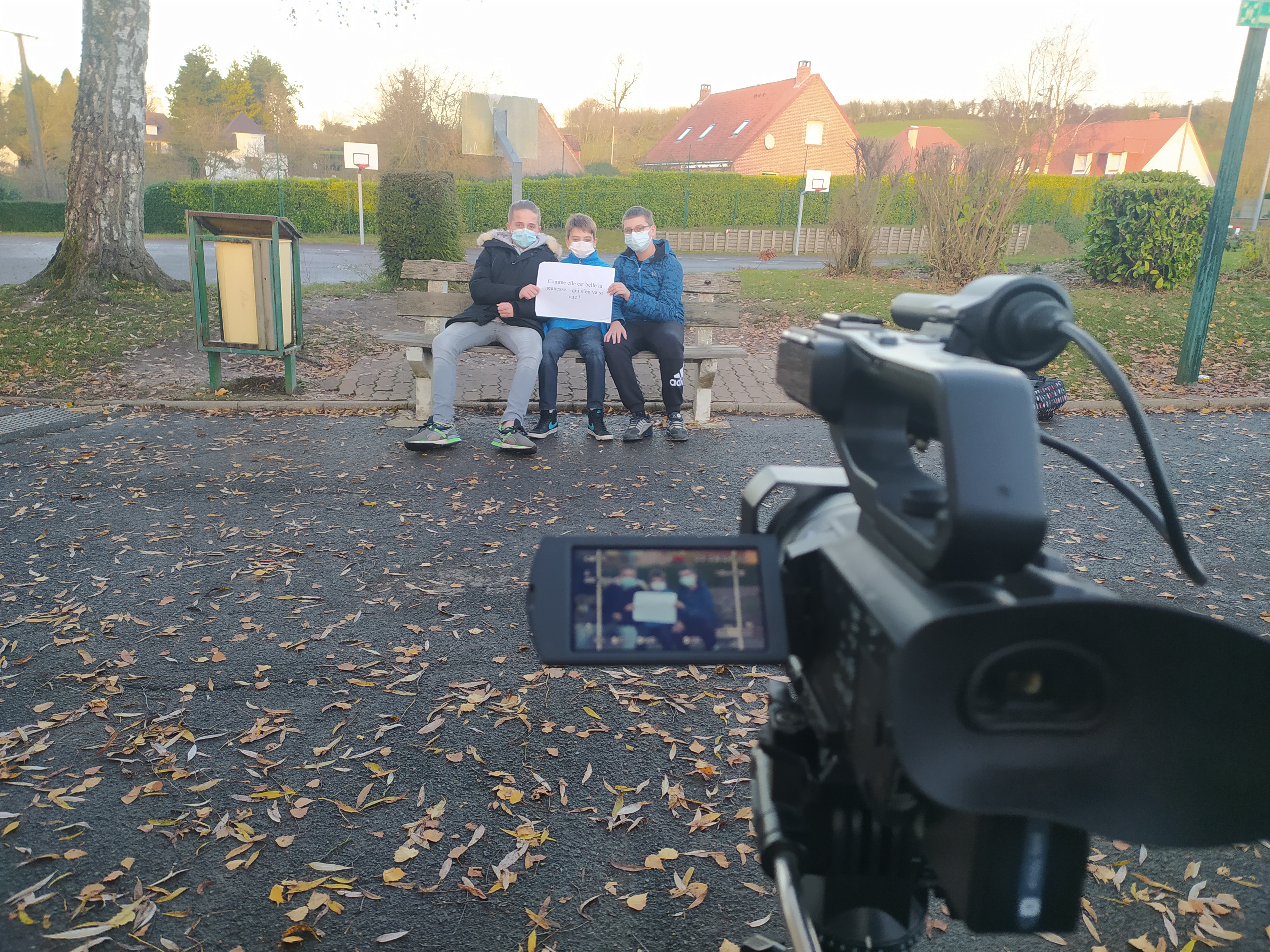 Ce matin, c’est Mr Tellier qui nous a ouvert la grille à 8h. Il fait sacrément frais, et les toits sont blancs : il a neigé cette nuit. On est à 5mn à pied depuis le gîte, mais on regrette de ne pas avoir de gants. Jean-Louis est venu pour nous aider à installer le QG, ramenant caméra, pied, micro, chargeur, imprimante, ordinateur, rallonge, multiprise et tout le tintouin. Mr Descamps, le CPE et Mme Brichet, la principale sont venus nous accueillir, ainsi que Florence, chargée de mission au Pas-de-Calais – grâce à qui on est au collège cette semaine – est passée nous dire bonjour.