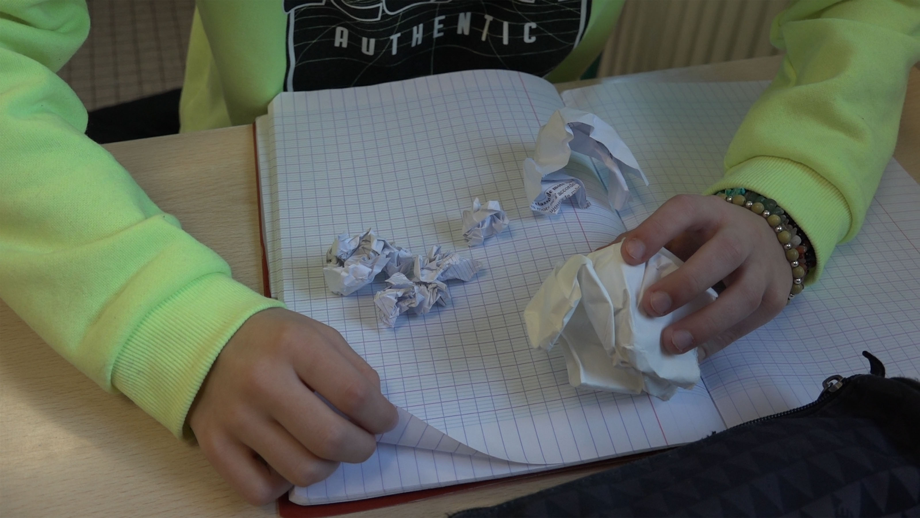 Les artistes se répandent sur tout le collège pour agir auprès des élèves. Mourad et Marie sont dans une classe et proposent aux élèves de 4ème Sand en salle 207 de répondre aux questions concernant la ruralité et l’enseignement public. La participation des élèves est le coeur de cette recherche. Alexandre, François et Isabelle font des séquences dites « les bêtises » avec la 5ème Mozart. Mme Schaeffer et M. Lorenc, les professeur.e.s de ces deux classes prêtent main forte aux membres de la compagnie HVDZ. Pendant ce temps les techniciens s’affairent au montage et à l’écriture du film spectacle qui sera diffusé à la salle des fêtes de Hucqueliers jeudi 3 mars de 9H30 à 17h. Toutes les heures. Marie D. les a rejoints ce matin. En tout, ils sont huit. Loraine, chargée de mission pour la culture au conseil départemental du Pas de Calais est passée lundi soir au collège Gabriel de la Gorce. Pour se rendre compte du déroulement de l’Instantané.