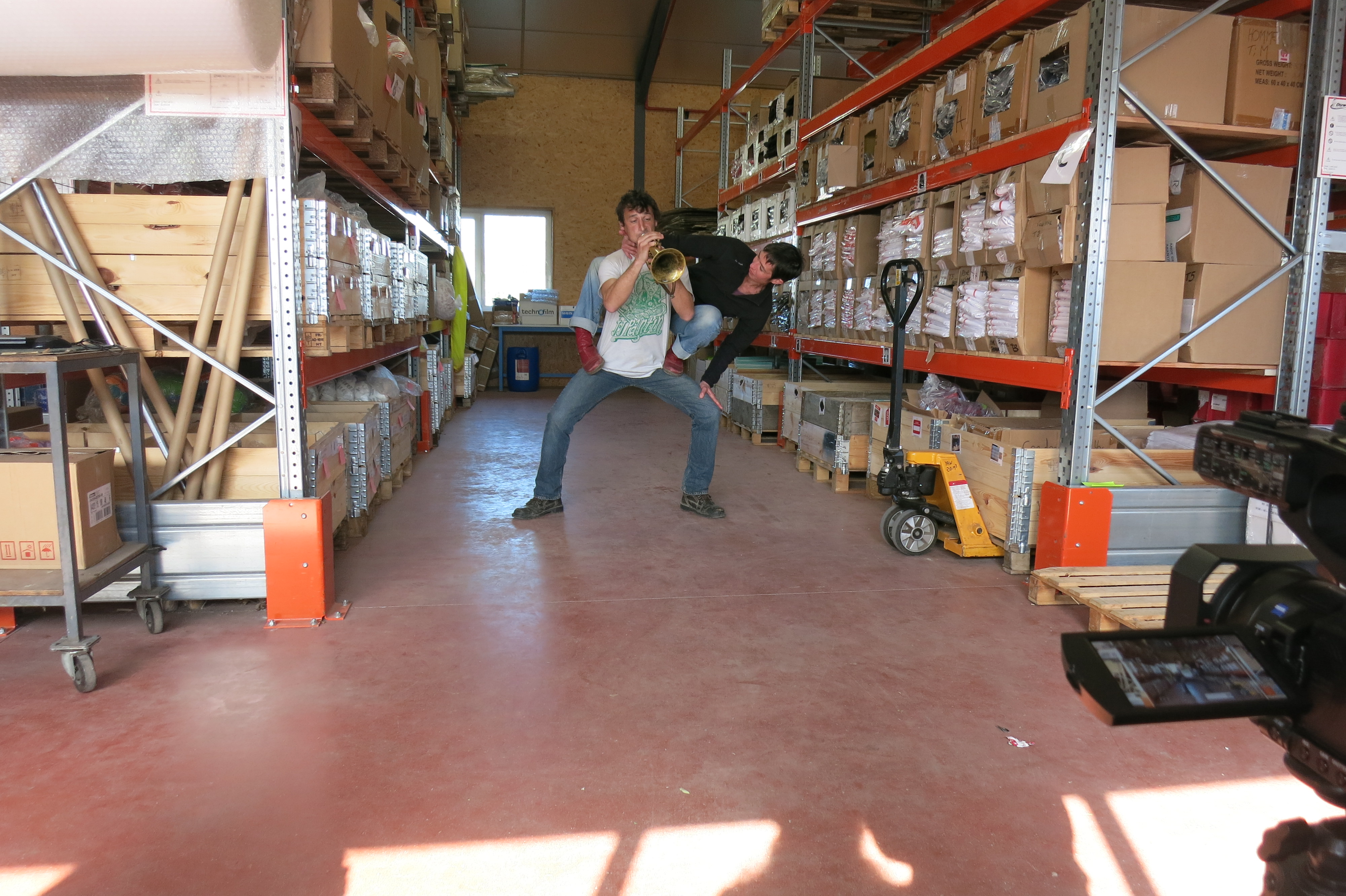 Ce mardi matin, nous rencontrons, pour une conversation filmée, Loïc Tytgat, le directeur de L’ESAT, passionné et accueillant. Il nous raconte comment ça se passe ici, il nous raconte le dispositif « différent et compétent ». On visite les ateliers. Partout, une bonne humeur communicative. On retrouve des personnes qu’on avait rencontrées au cours de théâtre le mercredi soir à l’Échalier, on retrouve des personnes qu’on avait rencontrées le 7 février lors de la réunion publique pour la préparation de la veillée. On parle du film-spectacle. De notre côté, c’est le dernier jour de tournage (parce qu’après il faudra finir les montages pour être prêts pour vendredi) et on a une très belle surprise : Loïc est d’accord pour nous que nous revenions avec les danseurs. On va pouvoir danser, faire des équilibres, jouer du bugle et filmer dans les ateliers de l’ESAT, bref on va avoir des images dans une petite usine, rue de l’industrie à Mondoubleau. Merci.
