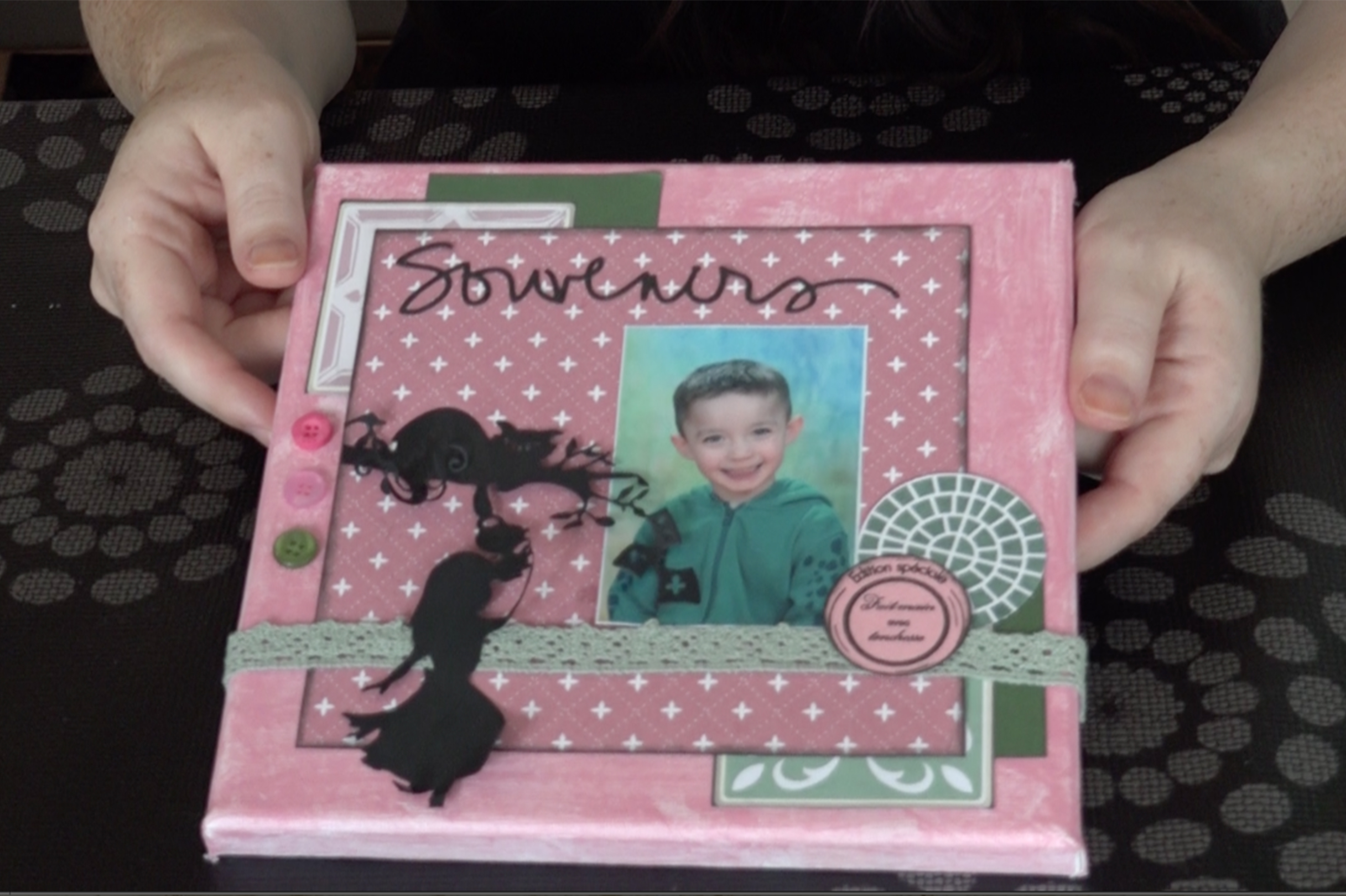 . La toile de Paul. C’est une toile que Paul a faite pendant tous les confinements. C’est un kit Aduges qu’on a récupéré, c’était pour la fête des mères cette année. Il fallait qu’il crée un tableau avec les éléments qui étaient donnés dans le kit. Et cette photo là, c’était la seule photo de classe qu’il a eu. Parce qu’il a eu des petits soucis de santé, alors il n’a qu’une seule photo de classe. Et je trouve qu’il s’est bien débrouillé et c’est un super souvenir. Je suis quelqu’un de très minimaliste, mais ça c’est quelque chose que je vais garder.